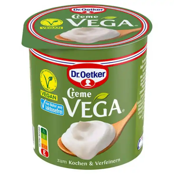 0,15 kg(6,60 €/1 kg)\n- Je 150-g-Packung - Dr. Oetker Creme VEGA ist die vegane Alternative zu Crème fraîche. Auf Soja-Basis und ganz ohne tierische Bestandteile ist Creme VEGA ideal zum Kochen, Verfeinern und Backen