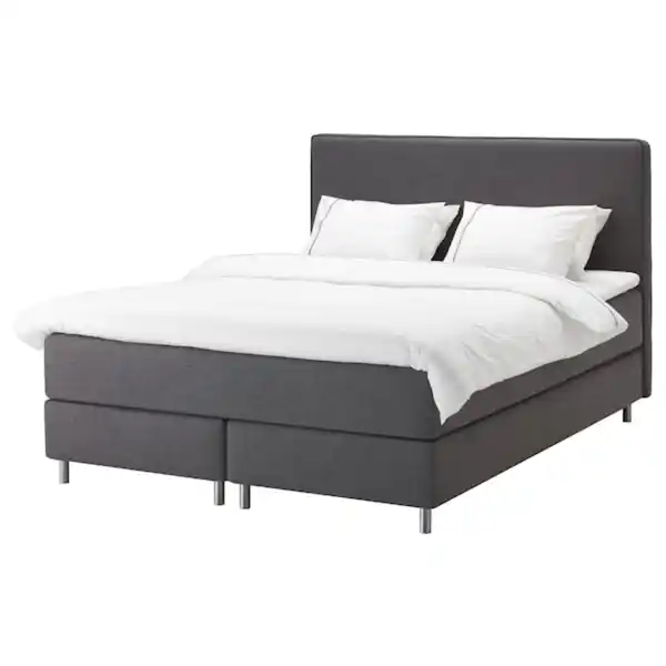 DUNVIK Boxspringbett, Valevåg fest/Tustna dunkelgrau 180x200 cm