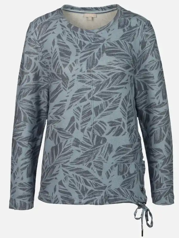 Damen Flauschshirt mit Blätterprint Blau