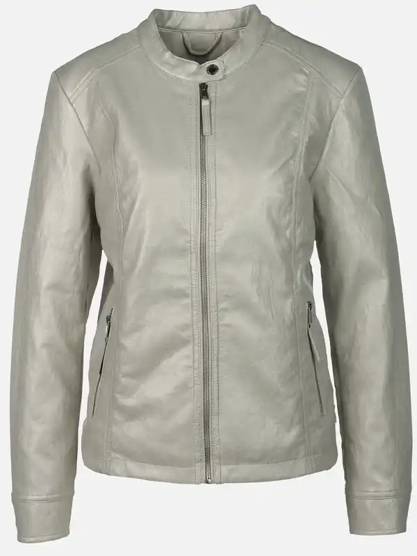 Damen Kunstlederjacke mit Stehkragen Grün