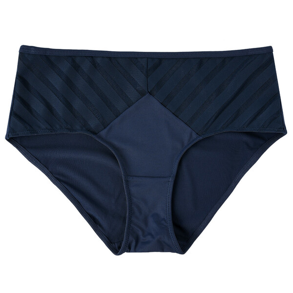 Perfekter Sitz! Dunkelblaue Panty aus anschmiegsamer Mikrofaser mit Einsätzen aus zartem Mesh mit Streifenstruktur. Alle Ausschnitte elastisch gearbeitet für hohen Tragekomfort. Im Schritt komfortabel mit Baumwollzwickel gearbeitet.