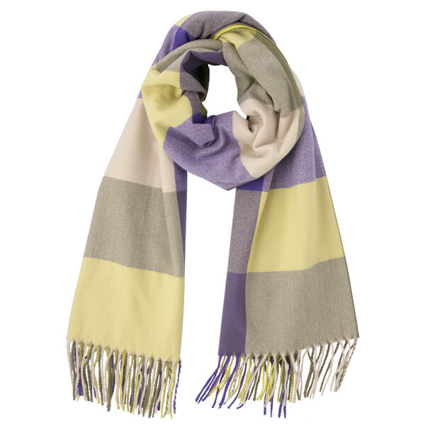 Ein Must-Have für den Übergang! Weicher Schal in Lila, Grün und Grau kariert mit langen Fransen an den Enden. Maße ca. 215 x 80 cm (LxB).