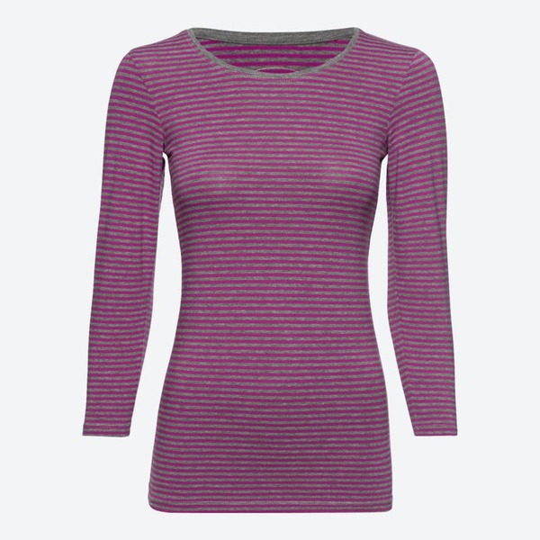 Bringen Sie Farbe in den Alltag: Dieses Damen-Shirt von Laura Torelli Collection verzaubert Sie mit dem trendigen Ringelmuster. Wählen Sie eines von 3 verschiedenen Farbdesigns und zaubern Sie angesagte Outfits. Das angenehme Jersey-Material garantiert Ihnen einen hautsympathischen Tragekomfort. Mit hohem Baumwoll-Anteil Mit Elasthan Mit 3/4-Ärmeln