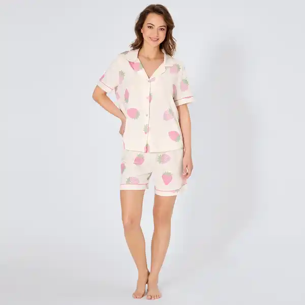 Der Damen-Shorty von Bo_dy Collection überzeugt mit modernem Boyfriend-Design und attraktivem Erdbeer-Allover-Muster. Die angenehme Materialkombination aus Modal und Baumwolle bietet ein weiches Tragegefühl und hohen Komfort. Ideal für entspannte Nächte in stilvoller Nachtwäsche. Modisches Erdbeer-Allover-Muster Boyfriend-Schnitt für lockeren Sitz Weiches Material aus Modal und Baumwolle Geeignet als bequeme Nachtwäsche