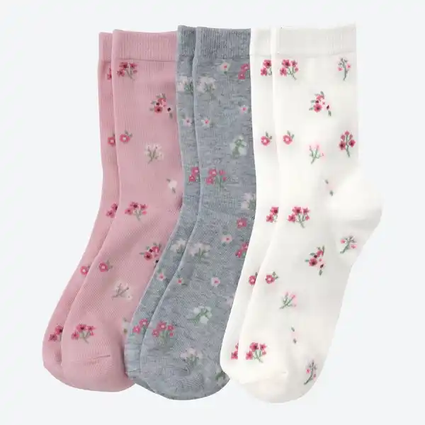 Damen-Socken mit Blumen-Muster, 3er-Pack