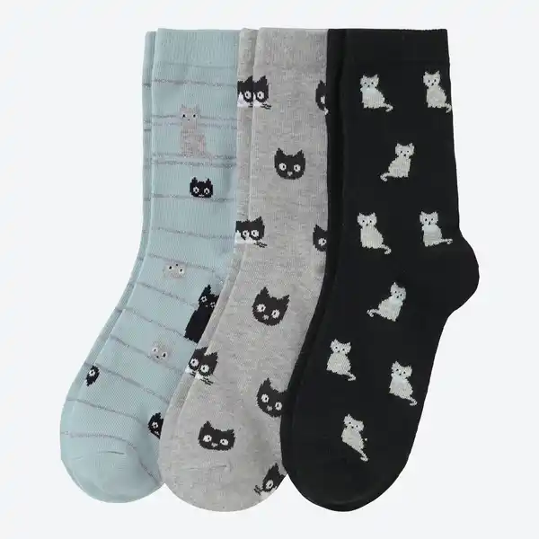 Damen-Socken mit Katzenmotiv, 3er-Pack