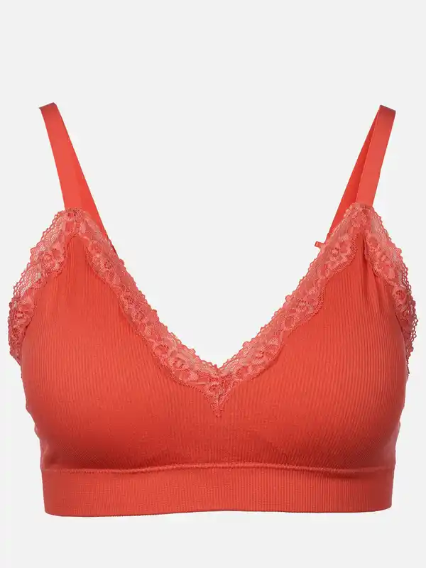 Damen Soft BH seamless mit Ripp und Spitze Pink
