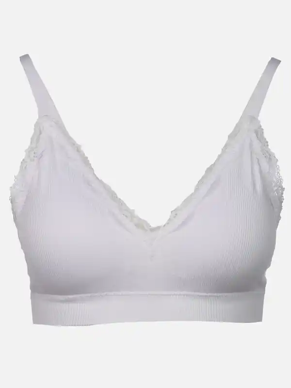 Damen Soft BH seamless mit Ripp und Spitze Weiß