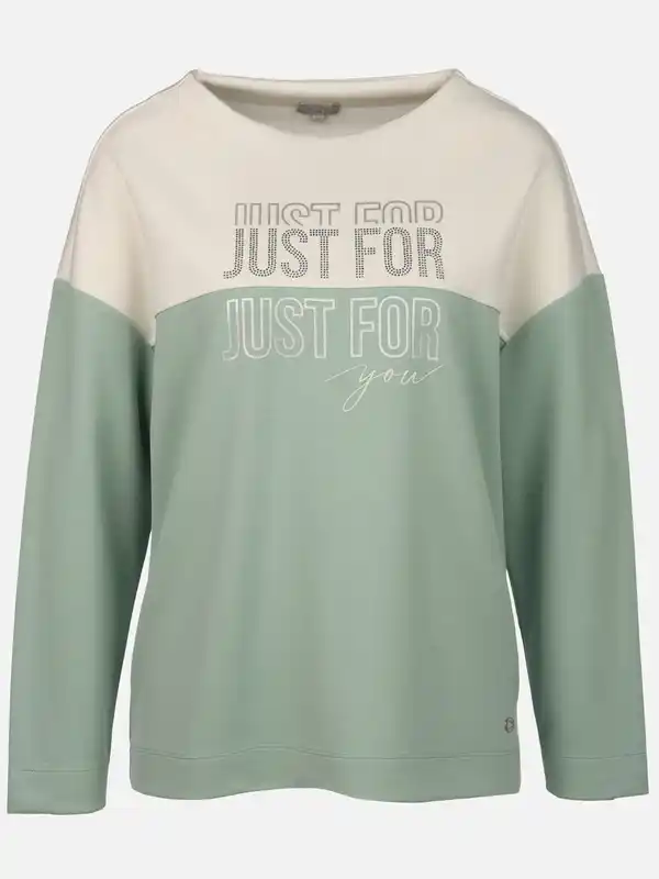 Damen Sweatshirt mit Glitzersteinchen und Schriftprint Salbei