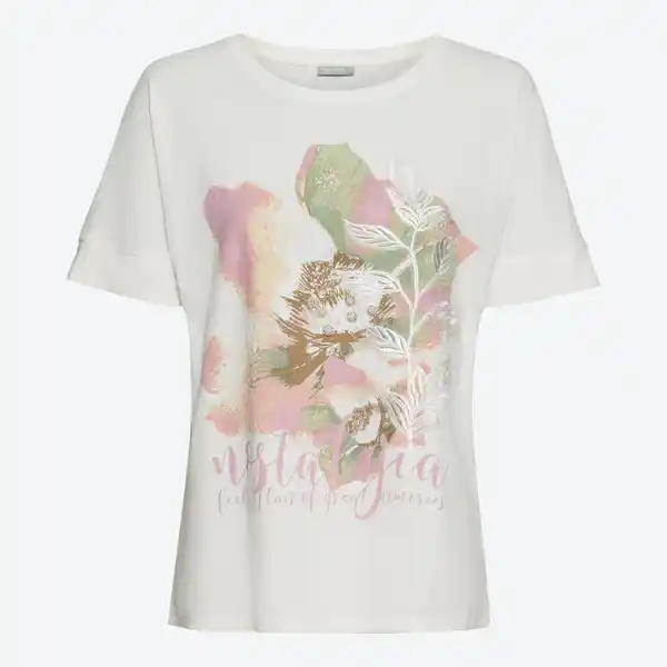 Dieses Damen-T-Shirt von Laura Torelli Classic überzeugt durch seinen einzigartigen Print und die stilvollen 3D-Spitzenapplikationen. Der klassische Rundhalsausschnitt, überlappte Schultern und die feinen Zierperlen verleihen dem T-Shirt eine feminine und moderne Note. Das T-Shirt begeistert dank reiner Baumwolle mit einem angenehmen Tragegefühl und hochwertiger Verarbeitung. Modischer Frontaufdruck mit 3D-Applikationen Mit dekorativen Zierperlen Femininer Rundhalsausschnitt Überlappte Schultern für moderne Optik Zweifach abgestepptes Saumdetail Aus reiner Baumwolle gefertigt