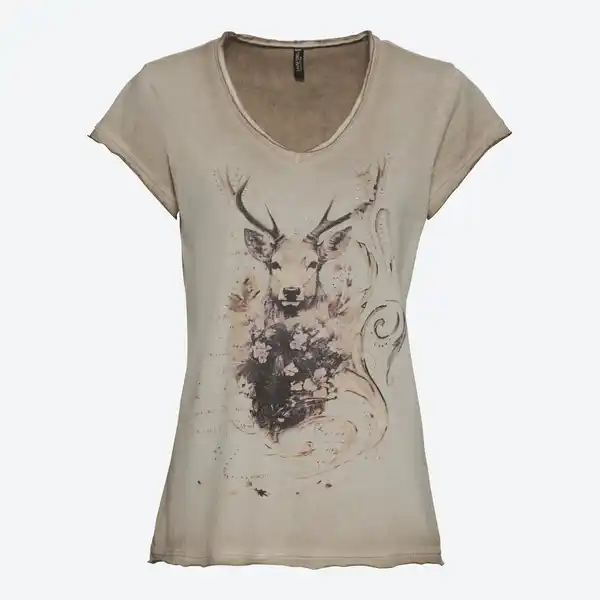 Damen-Trachten-T-Shirt mit Hirsch-Motiv