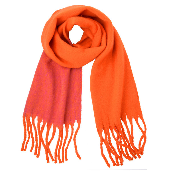 Eine Farbkombi, die auffällt! Volumiger Schal in Orange und Pink. Mit langen Fransen an den Enden und in sehr flauschiger und weicher Qualität. Maße (mit Fransen) ca. 240 x 40 cm (LxB).