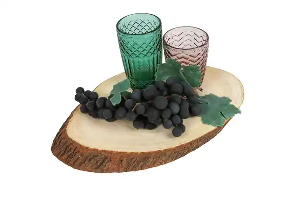 Diese Deko-Baumstammscheibe in ovaler Form ist der perfekte Blickfang auf dem Tisch.