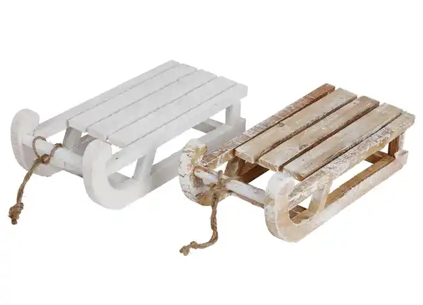 Den weiß bemalten Deko-Schlitten aus Holz im Used-Look können Sie vielseitig in Ihre Dekoration einbinden und immer wieder neu gestalten.