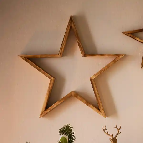 Dieser Deko-Stern azs Holz von Home ist eine stilvolle Ergänzung für Ihr Zuhause und überzeugt durch seinen modernen, geflammten Look. Die MDF-Ausführung bietet Ihnen Dekorationsvielfalt in zwei Größen. Verschönern Sie Wohn- oder Arbeitsbereich und setzen Sie gezielte Akzente mit diesem ansprechenden Dekoelement. Moderner Deko Stern Holz im geflammten Look In zwei Größen verfügbar: S ca. Ø 26,5 cm, L ca. Ø 42 cm Aus MDF gefertigt Dekorativ und vielseitig einsetzbar