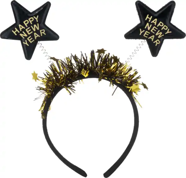 Dekorieren & Einrichten Haarreif "HAPPY NEW YEAR" mit schwarzen Sternen, 1 St