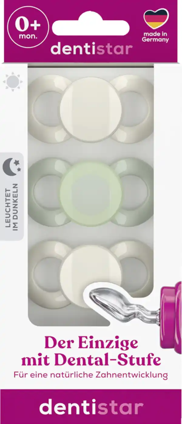 - Einzigartige Dentalstufe: Dentistar Schnuller wurden unter Berücksichtigung der Zahngesundheit Ihres Babys entwickelt. Sie beugen nachweislich Zahnfehlstellungen vor, dank ihrer einzigartigen Dentalstufe, die den Kiefer und den Gaumen optimal unterstützt.