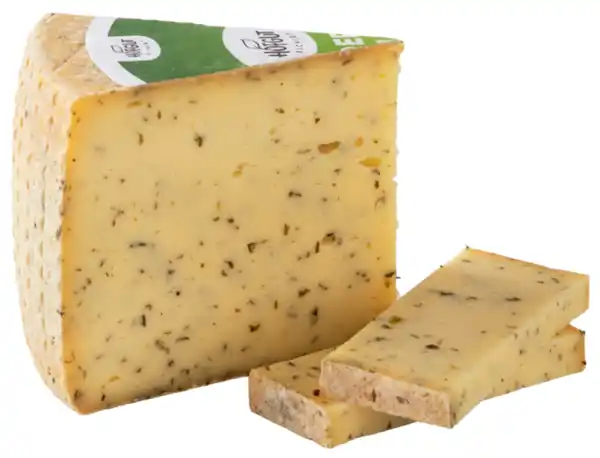 Schnittkäse aus Deutschland mit frischer Bärlauchnote, mild, 8 Wochen rindengereift, mit tierischem Lab, 45 % Fett i.Tr.