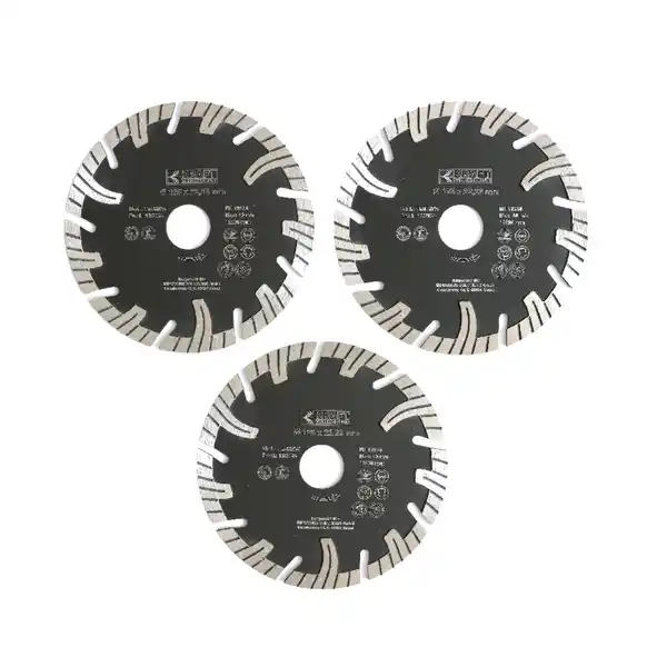 Kraft Werkzeuge Diamant-Trennscheiben ø125 mm, Twill und feine Welle 3 tlg. Scheibengröße: ø125mmDicke: Körper 1,2 mm, Zähne 2,2 mmBefestigungsloch: 22,23 mm Material des Gehäuses: 65Mnmax. Geschwindigkeit: 80 m/s, max. 12.200 min-1