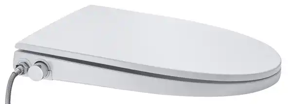 Der Diaqua WC-Sitz Lavalino in weiß bietet extra Hygiene und Komfort: abnehmbar, mit Absenkautomatik sowie regelbarer Lady- und Gesäßdusche mit individuell einstellbarem Wasserstrahl. Die gewünschte Duschfunktion lässt sich ganz einfach per Drehknopf umschalten. Der Sitz aus robustem Duroplast mit Metall-Befestigung passt auf alle handelsüblichen WCs (Lochabstand 5,5–17,5 cm, Montage von unten) und ist bis 110 kg belastbar. Kein Strom nötig – es reicht ein Kaltwasseranschluss. Befestigungsmaterial und 3/8" Flexschlauch sind inklusive.