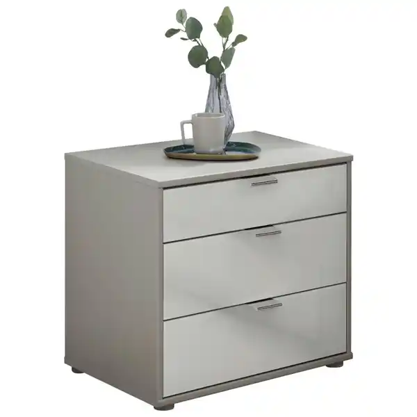 Dieter KnollNACHTSCHRANK, in der Farbe Grau, Weiß, aus dem Material Metall Das Möbelstück hat 3 Schubladen. Der Artikel hat eine Größe von 40x48x43 cm., hat die Auszeichnung: ISO 9001, Made in Germany., die Besonderheiten des Artikels sind Typenauswahl, Soft-Close-System.