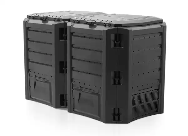 Garten-Komposter mit zwei Kammern für Garten- und Küchenabfälle mit einem Fassungsvermögen von ca. 800 Liter.