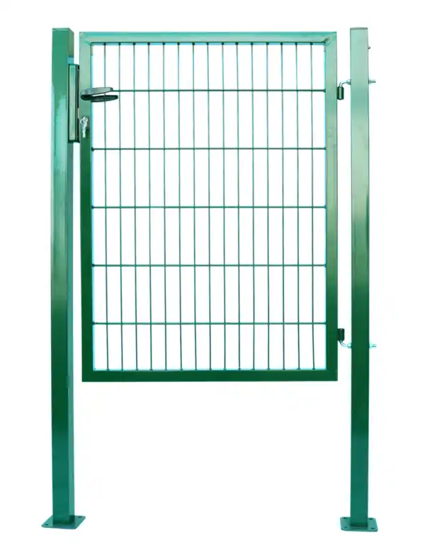HC Garten & Freizeit Doppelstabmatten Gartentor, ca. 100 x 140 cm – Moosgrün Material: feuerverzinkter Stahl Oberflächenbehandlung: Pulverbeschichtung Korrosionsschutz und Langlebigkeit Stabil und sicher Hohe UV-Beständigkeit Bodenbefestigung Zaunpfosten: zum Einbetonieren inkl. Befestigungsschellen Farbe Moosgrün Maße Ca. 100 x 140 cmTechnische Daten Maße Gartentor (HxB): ca. 1400 x 1000 mm (ohne Pfosten 870 mm) Maße Torpfosten (HxBxT): ca. 2300 x 60 x 60 mm Drahtstärke: senkrecht ca. 5 mm, horizontal ca. 6 mm Maschenweiten: ca. 200 x 50 mm Lieferumfang 1x Gartentor (inkl. Zubehör wie Schloss, Schlossblende, Drückergarnitur, Schlüssel, Befestigungsschellen)