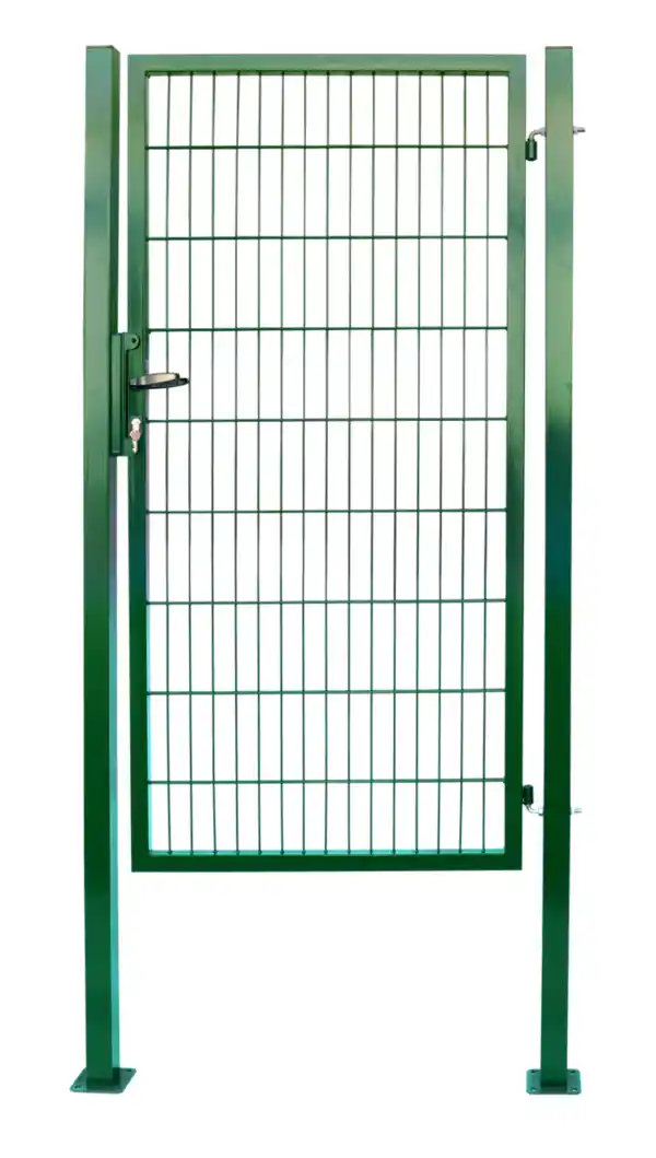 Green Yard Outdoor Living Doppelstabmatten Gartentor ca. 100 x 160 cm - Moosgrün Material: feuerverzinkter Stahl Oberflächenbehandlung: Pulverbeschichtung Korrosionsschutz und Langlebigkeit Stabil und sicher Hohe UV-Beständigkeit Bodenbefestigung Zaunpfosten: zum Einbetonieren inkl. Befestigungsschellen Farbe Moosgrün Maße Ca. 100 x 160 cmTechnische Daten Maße Gartentor (HxB): ca. 1600 x 1000 mm (ohne Pfosten 870 mm) Maße Torpfosten (HxBxT): ca. 2300 x 60 x 60 mm Drahtstärke: senkrecht ca. 5 mm, horizontal ca. 6 mm Maschenweiten: ca. 200 x 50 mm Lieferumfang 1x Gartentor (inkl. Zubehör wie Schloss, Schlossblende, Drückergarnitur, Schlüssel, Befestigungsschellen)