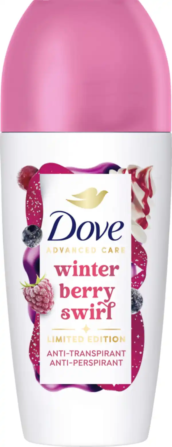 Das Dove Advanced Care Anti Transpirant Winter Berry Swirl sorgt als Limited Edition für Verwöhnmomente: denn bei kalten Außentemperaturen und trockener Heizungsluft braucht es eine Extraportion Pflege. Daher ist das Roll-On Deo mit dem wohlig warmen Duft der ideale Begleiter im Winter. Das Dove Anti Transpirant mit Pro-Ceramide Technology pflegt die zarte Achselhaut schön weich und kann den Regenerationsprozess der Haut unterstützen – für gepflegte und sanfte Achselhaut. Der Deoroller schützt zudem zuverlässig mit patentierter Formel und bietet 72 Stunden Deo-Schutz. Einfach das Deodorant auf die trockene Haut auftragen und schon kann der Tag starten.