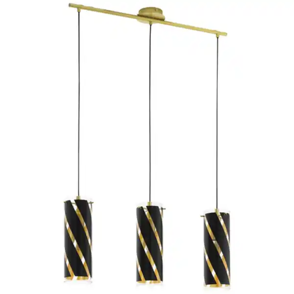 Anwendungsbereich: Wohnzimmer • Einsatzbereich: innen • Farbe: goldfarben, schwarz • Farbe Kabel: schwarz • Form: rechteckig • Gewicht: 3360 g • Marke: EGLO • Serienname: PINTO NERO 1 • Stil: Modern • Leuchtmittel (inkl.): Nein • Leuchtmittel wechselbar: Ja • Anzahl Leuchtmittel: 3 • Anzahl Lichtquellen: 3 • Bewegungsmelder: Nein • Dimmbar: Nein • Ein- und Ausschalter: Nein • Fernbedienung (inkl.): Nein • Inklusive Transformator: Nein • Schwenkbar: Nein • Tag-Nacht-Sensor: Nein • Timerfunktion: Nein • Breite: 11 cm • Höhe: 110 cm • Länge: 72,5 cm • Tiefe: 11 cm • Material: Stahl • Material Gestell: Stahl • Material Schirm: Glas • Betriebsart: Netz • Betriebsspannung: 230 V • Fassung: E27 • Leistung (max.): 60 W • Leistung (min.): 60 W • Leistung je Leuchtmittel (max.): 60 W • Netzspannung (max.): 240 V • Netzspannung (min.): 220 V • Schutzart: IP 20 • Schutzklasse: I • Stromversorgung: Netz • Montageart: Deckenmontage • Lieferumfang: Hängeleuchte,Schirm