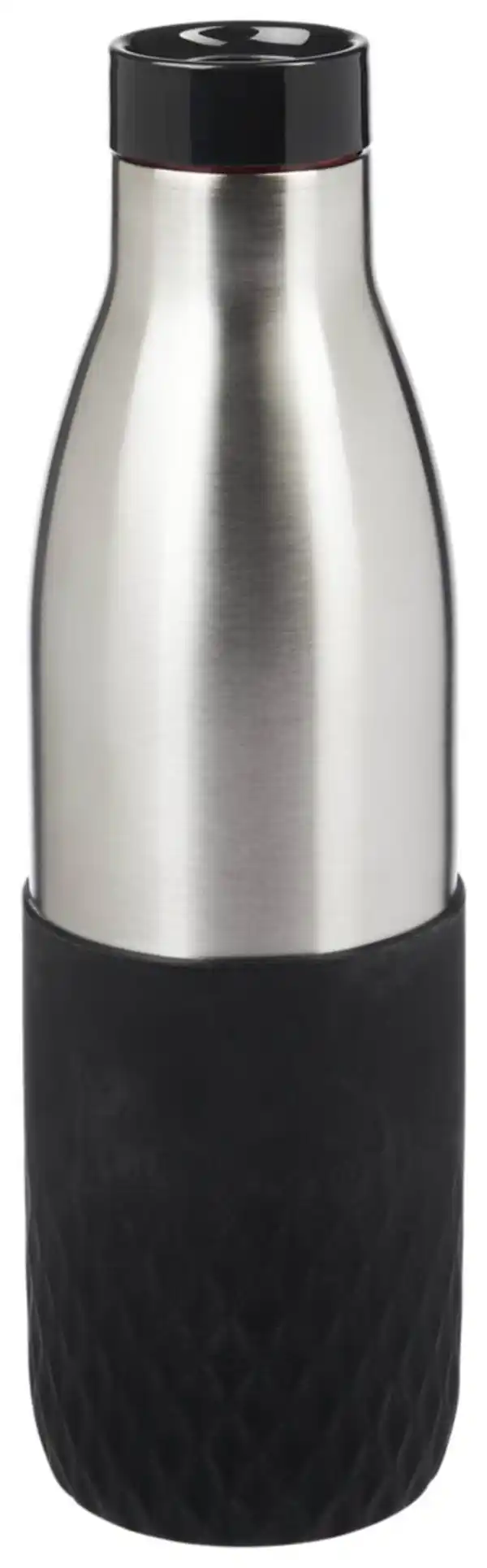 Aus doppelwandigem Edelstahl, vakuumisoliert > Mit Soft-Touch-Manschette > Quick-Press-Verschluss > Per Knopfdruck zu öffnen > Verschluss zur Renigung zerlegbar > 100 % auslaufsicher > Hält bis zu 24 h kalt/12 h warm > Spülmaschinengeeignet > Fassungsvermögen ca. 0,7 l > Größe ca. Ø 7,6 x 26 cm