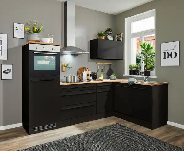 Eckküche Jazz mit Geräten ca.260x175cm Schwarz, Schwarz