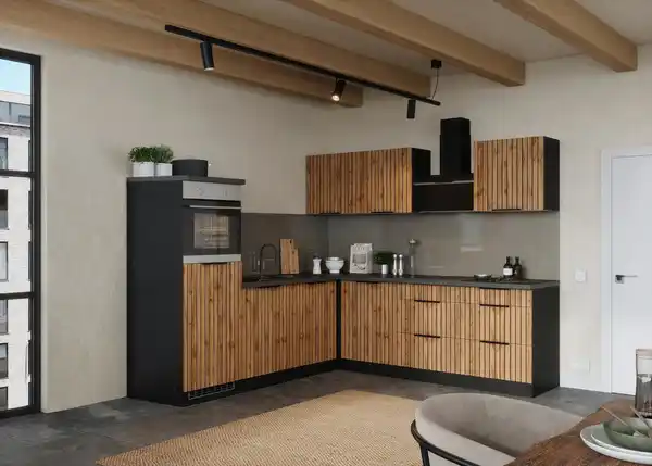 Eckküche Liverpool m. Geräten ca. 240x240cm Eiche