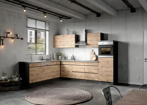 Eckküche Turin mit Geräten ca. 240x300 cm Graphit/Eiche