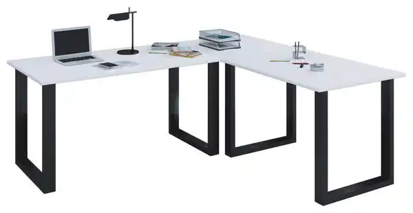 Eckschreibtisch Lona Schwarz/Weiß, Schwarz, Weiß
