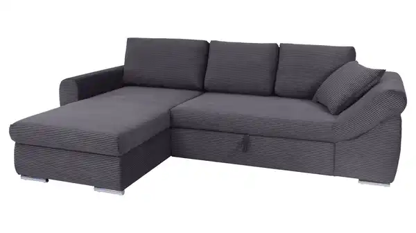Ecksofa Schlaffunktion Bettkasten anthrazit Cord - RAMONA
