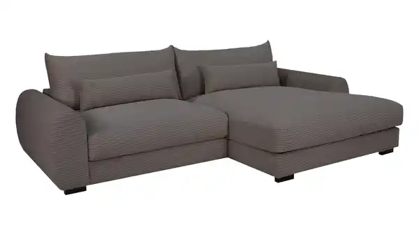 Mit dem Ecksofa MARK können Sie es sich auf ca. 265 x 180 cm richtig bequem machen. Die Nosagunterfederung sorgt dabei für den entsprechenden Sitzkomfort. 2 große Rückenkissen und 2 Zierkissen im selben Cordbezug und derselben Farbe laden zum gemütlichen Zurücklehnen und Entspannen nach einem langen Tag ein. Und auf der Ottomane mit einer Breite von ca. 132 cm haben Sie ausreichend Platz, um auch mal die Beine auszustrecken.