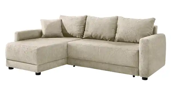 Mit einer Breite von ca. 232 cm haben Sie auf dem Ecksofa VENEZIA viel Platz für entspannte Fernsehabende. Aber auch auf spontane Übernachtungsgäste sind Sie mit dem Sofa jederzeit vorbereitet. So lässt es sich dank der praktischen Schlaffunktion im Handumdrehen in eine großzügige Liegefläche von ca. 136 x 201 cm verwandeln. Im integrierten Bettkasten finden Sie geräumigen Stauraum für Bettwäsche, Kissen und alles, was schnell griffbereit sein soll. Den nötigen Sitz- und Liegekomfort garantiert die Schaumstoffpolsterung in Sitz und Rücken. Insgesamt 3 Rückenkissen und 1 Zierkissen sind im Lieferumfang enthalten, für noch mehr Komfort und gemütliche Stunden auf dem Sofa.