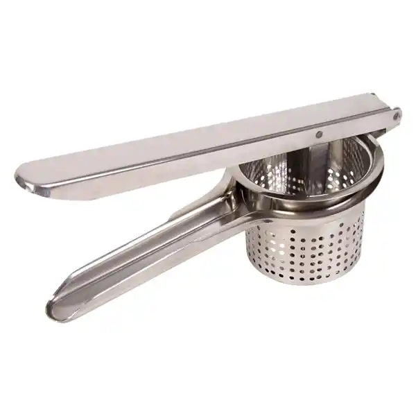 Praktische, handliche Kartoffelpresse aus Edelstahl zur Herstellung von leckeren Obst- und Gemüsepürees.