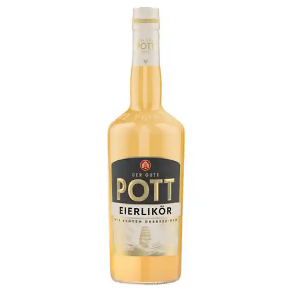 0,7 l(12,84 €/1 l)\n- 16 % vol, 700ml - Ab 18 Jahren - Jetzt probieren: cremig-leckerer POTT Eierlikör. Seinen unverwechselbar aromatischen Geschmack erhält POTT Eierlikör durch echten Übersee Rum. -- Mit seinen 16 % vol (100 % Rum) eignet sich POTT Eierlikör perfekt zum Backen, für Desserts, für Cocktails oder auch zum puren Genuss - Übrigens ist der Eierlikör auch laktosefrei