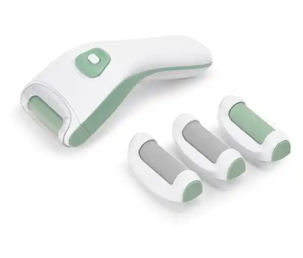 Elektrischer Hornhautentferner Farbe: Weiß-grün Material: Kunststoff Maße: B x H x T ca. 6 x 5 x 15 cm Rollen Breite ca. 4 cm, Ø ca. 1,5 cm Inhalt: Inkl. 4 Aufsätzen, Schutzkappe, 2 Batterien LR6 (AA) und Bedienungsanleitung Gewicht: Ca. 110 g Energieeffizienz-Angaben: Informationen zur Entsorgung sowie zu Sammelstellen in Ihrer Nähe finden Sie unter www.tchibo.de Technische Details: Spannung: 1,5 V / DC Lautstärke: ca. 75 dbA Für seidenweiche Füße im Handumdrehen2 Aufsätze: grob und feinEinfacher Wechsel der Aufsätze per KnopfdruckErgonomische Form für eine komfortable HandhabungMit Schutzkappe und Sicherheitsschalter gegen unbeabsichtigtes Einschalten2 grobe Aufsätze, 2 feine Aufsätze, Schutzkappe, SicherheitsschalterBatteriebetriebenRotierende Rollen zur effektiven HornhautentfernungTrockene, raue und verhornte Haut an Füßen, Händen und Ellenbogen wird sanft geglättet