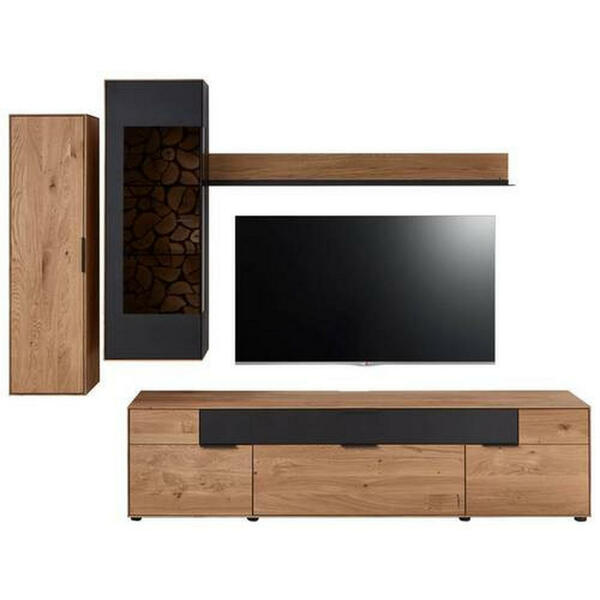 Escando Natürlich Wo Wohnwand, Schwarz, Eiche, Metall, Wildeiche, massiv, 3,3,6 Fächer, 2 Schubladen, 265.9x201.8x45.2 cm, EN 71, Typenauswahl, Beimöbel erhältlich, umfangreiches Zubehör erhält