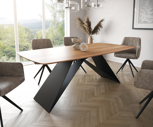 Esstisch Edge Boot 200x100 Akazie Natur V-Gestell Flachstahl Schwarz Schweizer Kante