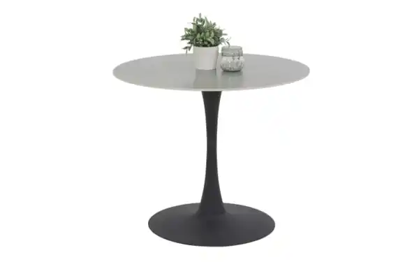 Ausführung der Platten Sintered Stone in Marmor grau matt Nachbildung, formschönes Gestell aus Metall in anthrazit.