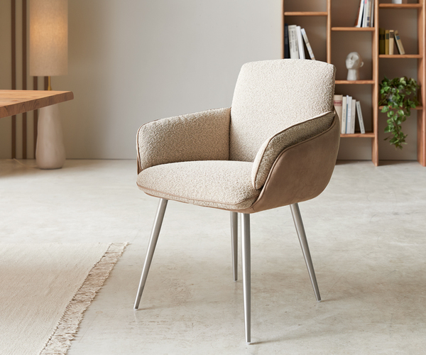 Esszimmerstuhl Luan-Flex mit Armlehnen Materialmix Schlamm 4-Fuß konisch Edelstahl 180° drehbar