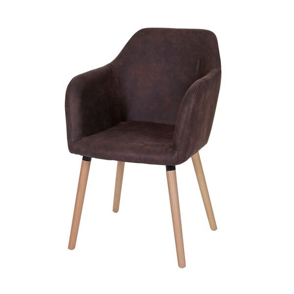 Esszimmerstuhl Vaasa T381, Stuhl Küchenstuhl, Retro 50er Jahre Design ~ Textil, vintage dunkelbraun, helle Beine