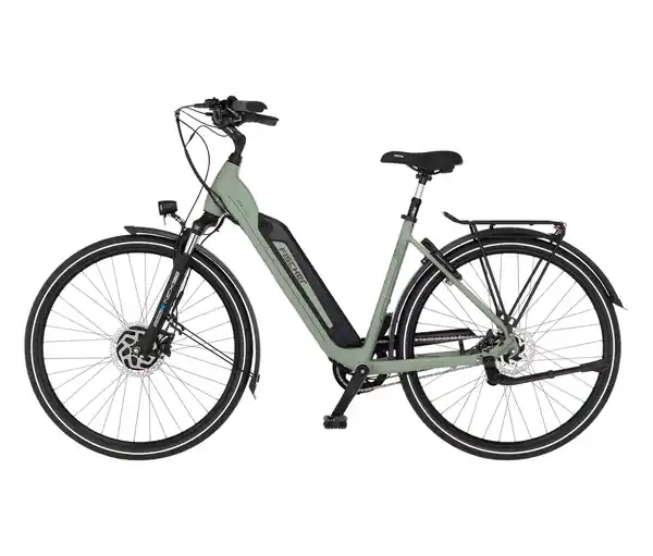 FISCHER City E-Bike CITA 2403 ACTIVE, Rahmenhöhe 43 cm Farbe: Misty green matt Material: Rahmen Aluminium Maße: Laufradgröße 28 Zoll Rahmenhöhe 43 cm Inhalt: Inkl. Akku, Ladegerät, Werkzeug-Set, Pedalen, Akku-Schlüssel, Bedienungsanleitung und Montageanleitung Gewicht: Ca. 26 kg Tragkraft: Max. 150 kg Leistung: 250 W Batterie-/Akkulaufzeit: Reichweite ca. 120 km Ladezeit ca. 290 Min. Gebrauchsanweisung: Wenn Sie den Akku tragen, vermeiden Sie unbedingt jedes Anstoßen oder Fallenlassen. Das könnte zu beträchtlichem Schaden führen, der sich unter Umständen auch erst nach längerer Zeit bemerkbar macht. Lagern Sie Ihren Akku nach Möglichkeit immer im aufgeladenen Zustand (zwischen 60% und 80% Ladezustand), da die Zellen des Akkus beschädigt bzw. zerstört (Tiefentladung) werden können, falls diese sich zu weit entladen. Lagern Sie Ihren Akku nach Möglichkeit bei einer Temperatur um 15 °C (Optimaltemperatur), um die Selbstentladung möglichst gering zu halten. Je niedriger die Temperatur wird, desto schneller entlädt er sich. Laden Sie Ihren Akku nach Gebrauch auf um die Lebensdauer des Akkus zu erhöhen. Vor dem Ladevorgang sollte der Akku allerdings zunächst 30 Minuten abkühlen. Warnhinweise: Beachten Sie folgende Sicherheitshinweise, um das Risiko von Unfällen oder Schäden bei der Verwendung dieses Produkts zu minimieren: Verwenden Sie das Produkt nur für den vorgesehenen Zweck und entsprechend den üblichen Gebrauchsweisen. Wenn eine Bedienungsanleitung bzw. Hinweise auf dem Produkt und/oder der Verpackung vorhanden sind, halten Sie sich an die darin enthaltenen Anweisungen. Unsachgemäße Verwendung kann zu Verletzungen oder Schäden führen. Prüfen Sie dies vor Inbetriebnahme des Produkts. Halten Sie das Produkt außerhalb der Reichweite von Kindern und Haustieren, es sei denn, es ist ausdrücklich für deren Gebrauch bestimmt. Überprüfen Sie das Produkt regelmäßig auf Anzeichen von Abnutzung, Beschädigung oder Funktionsstörungen. Verwenden Sie das Produkt nicht, wenn es Anzeichen von Defekten aufweist. Befolgen Sie alle geltenden gesetzlichen und sicherheitsrelevanten Vorschriften in Bezug auf den Gebrauch und die Entsorgung des Produkts. Halten Sie das Produkt sauber und warten Sie es gemäß den Herstellervorgaben, um eine sichere und effektive Nutzung zu gewährleisten. Gefahrenquellen vermeiden: Setzen Sie das Produkt keiner extremen Hitze, Feuchtigkeit oder direkter Sonneneinstrahlung aus, um eine mögliche Beschädigung oder Beeinträchtigung der Funktion zu verhindern. Verwenden Sie gegebenenfalls geeignete Schutzausrüstung (z.B. Handschuhe oder Schutzbrille), um Verletzungen bei der Verwendung des Produkts zu vermeiden. Die Nichtbeachtung dieser Hinweise kann zu Verletzungen, Sachschäden oder einer Beeinträchtigung der Produktleistung führen. Im Zweifel kontaktieren Sie den Hersteller oder einen Fachmann, um sicherzustellen, dass das Produkt korrekt und sicher verwendet wird. Technische Details: Reichweite ca. 120 km Höchstgeschwindigkeit 25 km/h Semi-integrierter Akku (seitlich entnehmbar), 9,8 Ah, Leistung 459 Wh Robuste Nabenschaltung (SHIMANO), 7 Gänge Federgabel und gefederte Sattelstütze Hydraulische Scheibenbremse (SHIMANO) Motor: FISCHER Drive Frontmotor, 48 V, 40 Nm Schloss: Rahmenschloss Schalthebel Art: Drehgriff Unterstützungsstufen: 5 Tretlager: Bewegungssensor im Innenlager Netzteil: Ladegerät Plug-Anschluss: 7-Pin Stecker Ladegerät: 2A/48V mit Eurostecker 7-Pin Nenndauerleistung: 250 W Sonstige Hinweise: Artikel wird zu 95% montiert geliefert Lieferung in 1 Packstück bis an die Bordsteinkante Keine Inselbelieferung möglich B x H x T Packstück ca. 188 x 26 x 126 cm, Gewicht ca. 32,9 kg Citybike mit leistungsstarkem Akku für eine Reichweite von bis zu 120 kmKraftvoller FISCHER Drive Frontmotor mit 40 Nm Drehmoment für eine dynamische Fahrt mit individuell wählbaren UnterstützungsmodiLeistungsstarker 459 Wh Akku bietet eine Reichweite von bis zu 120 km – semi-integriert und einfach seitlich entnehmbarSUNTOUR Federgabel und gefederte Sattelstütze für ein angenehmes Fahrgefühl und hohen Komfort auch auf unebenen Straßen90-Lux-LED-Lichtanlage und reflektierende Reifenstreifen für erhöhte Sichtbarkeit, integriertes Rahmenschloss für mehr SicherheitRobuste Nabenschaltung (SHIMANO) – 7 Gänge, im Stand schalten möglich Zugelassen nach StVZO Für Fahrrad-Kinderanhänger freigegeben