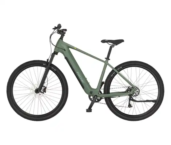 FISCHER MTB E-Bike MONTIS MOVE 01 474 D Farbe: Matt thymiangrün Material: Rahmen Aluminium Maße: Rahmenhöhe 48 cm Laufradgröße 28 Zoll Inhalt: Inkl. Akku, Ladegerät, Werkzeug-Set, Pedalen, Akku-Schlüssel, Bedienungsanleitung und Montageanleitung Gewicht: Ca. 28 kg Tragkraft: Max. 120 kg Leistung: 250 W, Akku 474 Wh Batterie-/Akkulaufzeit: Reichweite ca. 125 km Ladezeit ca. 395 Min. Gebrauchsanweisung: Wenn Sie den Akku tragen, vermeiden Sie unbedingt jedes Anstoßen oder Fallenlassen. Das könnte zu beträchtlichem Schaden führen, der sich unter Umständen auch erst nach längerer Zeit bemerkbar macht. Lagern Sie Ihren Akku nach Möglichkeit immer im aufgeladenen Zustand (zwischen 60% und 80% Ladezustand), da die Zellen des Akkus beschädigt bzw. zerstört (Tiefentladung) werden können, falls diese sich zu weit entladen. Lagern Sie Ihren Akku nach Möglichkeit bei einer Temperatur um 15 °C (Optimaltemperatur), um die Selbstentladung möglichst gering zu halten. Je niedriger die Temperatur wird, desto schneller entlädt er sich. Laden Sie Ihren Akku nach Gebrauch auf um die Lebensdauer des Akkus zu erhöhen. Vor dem Ladevorgang sollte der Akku allerdings zunächst 30 Minuten abkühlen. Warnhinweise: Beachten Sie folgende Sicherheitshinweise, um das Risiko von Unfällen oder Schäden bei der Verwendung dieses Produkts zu minimieren: Verwenden Sie das Produkt nur für den vorgesehenen Zweck und entsprechend den üblichen Gebrauchsweisen. Wenn eine Bedienungsanleitung bzw. Hinweise auf dem Produkt und/oder der Verpackung vorhanden sind, halten Sie sich an die darin enthaltenen Anweisungen. Unsachgemäße Verwendung kann zu Verletzungen oder Schäden führen. Prüfen Sie dies vor Inbetriebnahme des Produkts. Halten Sie das Produkt außerhalb der Reichweite von Kindern und Haustieren, es sei denn, es ist ausdrücklich für deren Gebrauch bestimmt. Überprüfen Sie das Produkt regelmäßig auf Anzeichen von Abnutzung, Beschädigung oder Funktionsstörungen. Verwenden Sie das Produkt nicht, wenn es Anzeichen von Defekten aufweist. Befolgen Sie alle geltenden gesetzlichen und sicherheitsrelevanten Vorschriften in Bezug auf den Gebrauch und die Entsorgung des Produkts. Halten Sie das Produkt sauber und warten Sie es gemäß den Herstellervorgaben, um eine sichere und effektive Nutzung zu gewährleisten. Gefahrenquellen vermeiden: Setzen Sie das Produkt keiner extremen Hitze, Feuchtigkeit oder direkter Sonneneinstrahlung aus, um eine mögliche Beschädigung oder Beeinträchtigung der Funktion zu verhindern. Verwenden Sie gegebenenfalls geeignete Schutzausrüstung (z.B. Handschuhe oder Schutzbrille), um Verletzungen bei der Verwendung des Produkts zu vermeiden. Die Nichtbeachtung dieser Hinweise kann zu Verletzungen, Sachschäden oder einer Beeinträchtigung der Produktleistung führen. Im Zweifel kontaktieren Sie den Hersteller oder einen Fachmann, um sicherzustellen, dass das Produkt korrekt und sicher verwendet wird. Technische Details: Reichweite ca. 125 km Höchstgeschwindigkeit 25 km/h Aluminium-Diamant-Rahmen FISCHER Drive Heckmotor mit 50 Nm Vollintegrierter Akku (abschließbar und nach unten entnehmbar), Leistung 474 Wh, Systemspannung 46 V Kettenschaltung (SHIMANO), 8 Gänge Federgabel Hydraulische Scheibenbremse (SHIMANO) Netzteil: Ladegerät Plug-Anschluss: 7-Pin Stecker Ladegerät: 2A/36V mit Eurostecker 7-Pin Nenndauerleistung: 250 W Sonstige Hinweise: Artikel wird zu 95% montiert geliefert Lieferung in 1 Packstück Anlieferung bis an die Bordsteinkante mit Spedition, 2-Mann-Handling Keine Inselbelieferung B x H x T Packstück ca. 198,5 x 24,5 x 125,5 cm, Gewicht ca. 32,9 kg Leistungsstarker FISCHER Drive Heckmotor mit 50 Nm für eine kraftvolle Unterstützung bei jedem AnstiegDie hydraulischen SHIMANO Scheibenbremsen garantieren sicheres, zuverlässiges Bremsen, selbst bei höheren Geschwindigkeiten und NässeLeistungsstarker 474-Wh Akku für eine Reichweite von bis zu 125 kmVollintegrierter Akku, abschließbar und nach unten entnehmbarKettenschaltung (SHIMANO), 8 GängeFahrrad mit Aluminium-Diamant-Rahmen