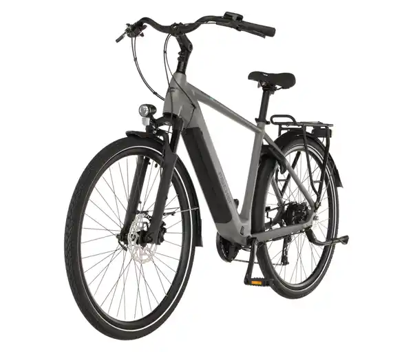 FISCHER Trekking-E-Bike VIATOR MOVE, groß, Diamant-Rahmen Farbe: Dunkelgrau Material: Rahmen Aluminium Maße: Rahmenhöhe 52 cm Laufradgröße 28 Zoll Inhalt: Inkl. Akku, Ladegerät, Werkzeug-Set, Pedalen, Akku-Schlüssel, Bedienungsanleitung und Montageanleitung Gewicht: Ca. 28 kg Tragkraft: Max. 120 kg Leistung: 250 W, Akku 474 Wh Batterie-/Akkulaufzeit: Reichweite ca. 125 km Ladezeit ca. 395 Min. Gebrauchsanweisung: Wenn Sie den Akku tragen, vermeiden Sie unbedingt jedes Anstoßen oder Fallenlassen. Das könnte zu beträchtlichem Schaden führen, der sich unter Umständen auch erst nach längerer Zeit bemerkbar macht. Lagern Sie Ihren Akku nach Möglichkeit immer im aufgeladenen Zustand (zwischen 60% und 80% Ladezustand), da die Zellen des Akkus beschädigt bzw. zerstört (Tiefentladung) werden können, falls diese sich zu weit entladen. Lagern Sie Ihren Akku nach Möglichkeit bei einer Temperatur um 15 °C (Optimaltemperatur), um die Selbstentladung möglichst gering zu halten. Je niedriger die Temperatur wird, desto schneller entlädt er sich. Laden Sie Ihren Akku nach Gebrauch auf um die Lebensdauer des Akkus zu erhöhen. Vor dem Ladevorgang sollte der Akku allerdings zunächst 30 Minuten abkühlen. Warnhinweise: Beachten Sie folgende Sicherheitshinweise, um das Risiko von Unfällen oder Schäden bei der Verwendung dieses Produkts zu minimieren: Verwenden Sie das Produkt nur für den vorgesehenen Zweck und entsprechend den üblichen Gebrauchsweisen. Wenn eine Bedienungsanleitung bzw. Hinweise auf dem Produkt und/oder der Verpackung vorhanden sind, halten Sie sich an die darin enthaltenen Anweisungen. Unsachgemäße Verwendung kann zu Verletzungen oder Schäden führen. Prüfen Sie dies vor Inbetriebnahme des Produkts. Halten Sie das Produkt außerhalb der Reichweite von Kindern und Haustieren, es sei denn, es ist ausdrücklich für deren Gebrauch bestimmt. Überprüfen Sie das Produkt regelmäßig auf Anzeichen von Abnutzung, Beschädigung oder Funktionsstörungen. Verwenden Sie das Produkt nicht, wenn es Anzeichen von Defekten aufweist. Befolgen Sie alle geltenden gesetzlichen und sicherheitsrelevanten Vorschriften in Bezug auf den Gebrauch und die Entsorgung des Produkts. Halten Sie das Produkt sauber und warten Sie es gemäß den Herstellervorgaben, um eine sichere und effektive Nutzung zu gewährleisten. Gefahrenquellen vermeiden: Setzen Sie das Produkt keiner extremen Hitze, Feuchtigkeit oder direkter Sonneneinstrahlung aus, um eine mögliche Beschädigung oder Beeinträchtigung der Funktion zu verhindern. Verwenden Sie gegebenenfalls geeignete Schutzausrüstung (z.B. Handschuhe oder Schutzbrille), um Verletzungen bei der Verwendung des Produkts zu vermeiden. Die Nichtbeachtung dieser Hinweise kann zu Verletzungen, Sachschäden oder einer Beeinträchtigung der Produktleistung führen. Im Zweifel kontaktieren Sie den Hersteller oder einen Fachmann, um sicherzustellen, dass das Produkt korrekt und sicher verwendet wird. Technische Details: Reichweite ca. 125 km Höchstgeschwindigkeit 25 km/h FISCHER Drive Heckmotor mit 50 Nm Vollintegrierter Akku (abschließbar und nach unten entnehmbar), Leistung 474 Wh, Systemspannung 36 V Hydraulische Scheibenbremse (SHIMANO) Kettenschaltung (SHIMANO), 8 Gänge Federgabel Netzteil: Ladegerät Plug-Anschluss: 7-Pin Stecker Ladegerät: 2A/36V mit Eurostecker 7-Pin Nenndauerleistung: 250 W Sonstige Hinweise: Artikel wird zu 95% montiert geliefert Lieferung in 1 Packstück Anlieferung bis an die Bordsteinkante mit Spedition, 2-Mann-Handling Keine Inselbelieferung B x H x T Packstück ca. 198,5 x 24,5 x 125,5 cm, Gewicht ca. 32,9 kg Leistungsstarker FISCHER Drive Heckmotor mit 50 Nm für eine kraftvolle Unterstützung bei jedem AnstiegDie hydraulischen SHIMANO Scheibenbremsen garantieren sicheres, zuverlässiges Bremsen, selbst bei höheren GeschwindigkeitenLeistungsstarker 474-Wh Akku für eine Reichweite von bis zu 125 kmVollintegrierter Akku, abschließbar und nach unten entnehmbarKettenschaltung (SHIMANO), 8 GängeHelles Front- und Rücklicht für eine optimale SichtFahrrad zugelassen nach StVZO