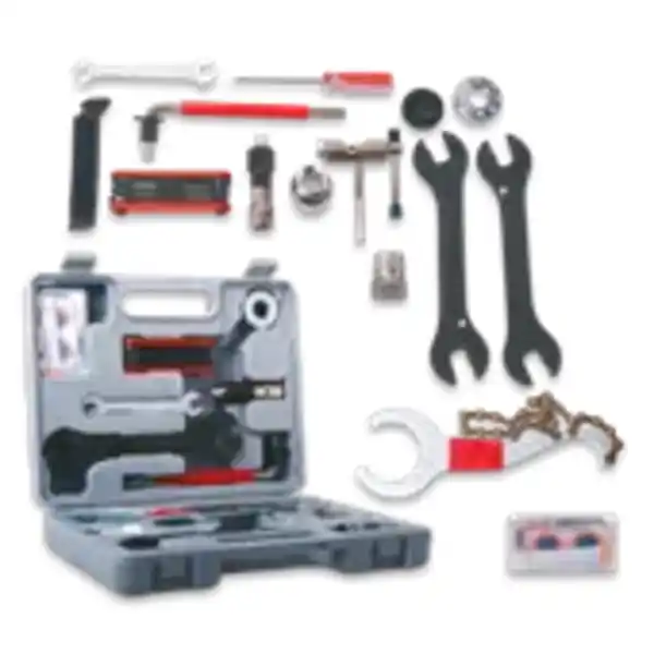 20-tlg., ca. 32 x 25 x 7 cm, enthält u. a. Reifenreparatur–Set, Kurbelabzieher, Schraubenschlüssel 8/10, Dreifach- schlüssel, 8-in-1-Inbusschlüssel–Tool u. v. m.
